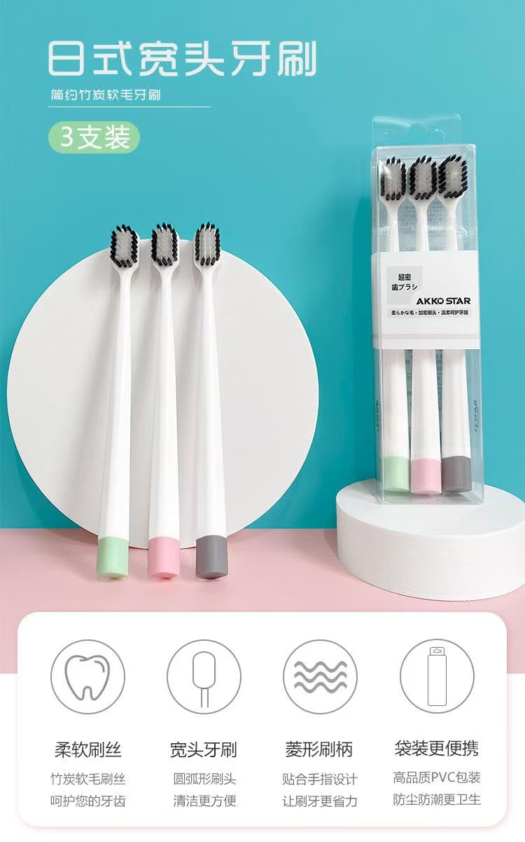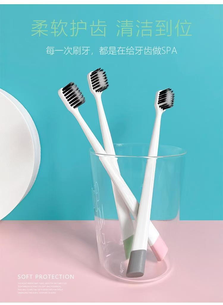日式竹炭宽头牙刷成人家用家庭装情侣细软毛高级牙刷